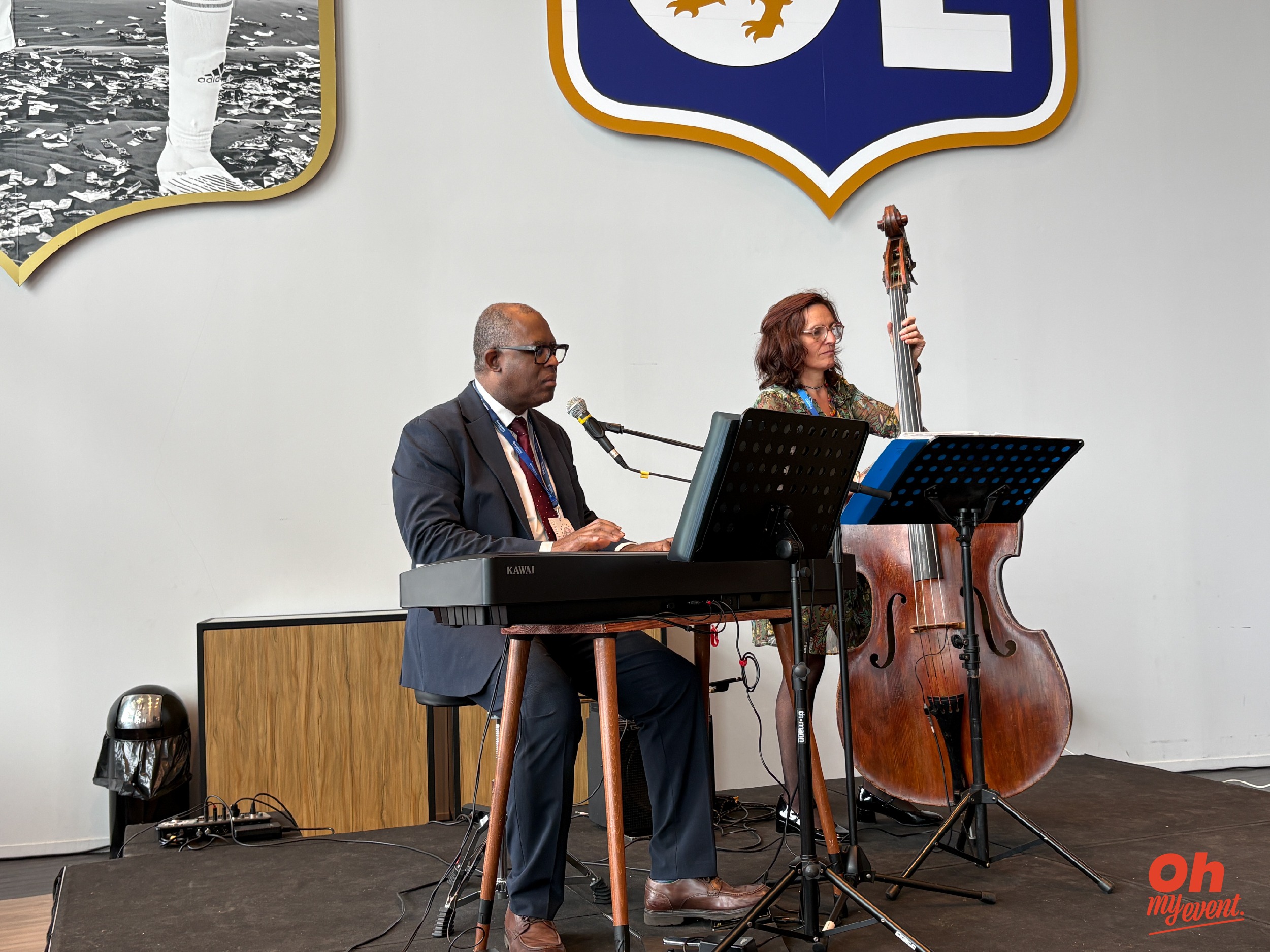 Un DJ était présent pour installer une ambiance musicale dynamique et accompagner les temps forts de l’événement, créant une atmosphère festive dès l’arrivée des invités. Un duo original mêlant synthé et contrebasse a offert une performance live élégante et rythmée, apportant une touche artistique et différenciante à l’événement. Enfin, très apprécié des participants, le photobooth a permis aux invités de repartir avec un souvenir personnalisé, tout en générant de l’engagement et de l’interaction.